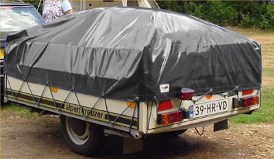 Ik heb het weleens voorzichtig aangekaart, maar jammer genoeg is het orgiezeil nooit als zodanig gebruikt. Gelukkig heb ik er alsnog een tijd plezier van gehad. Slechts weinig mensen weten dat het nog dienst heeft gedaan als afdekhoes voor mijn Alpenkreuzer vouwwagen. Ook op de camping hielden we bij regenachtig weer altijd de voeten droog want we hadden een waterdicht grondzeil in de voortent!