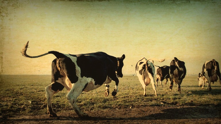 Op klompen en gehuld in blauw ketelpak, na springen over slootjes en klimmen over hekken, half onder een koe gekropen op een wiebelig houten krukje. Wel goed oppassen als de koe onrustig was: een schop tegen de schenen deed gemeen pijn. En beurtelings trekken aan de spenen, had Bram hem geleerd, tot de lauwwarme melk kletterend in de emmer spoot. Dus zo deed hij dat, zolang de voorraad strekte. Koe na koe.